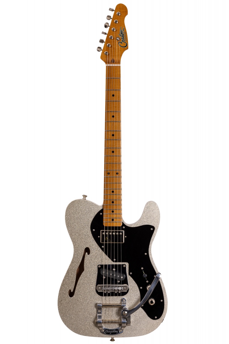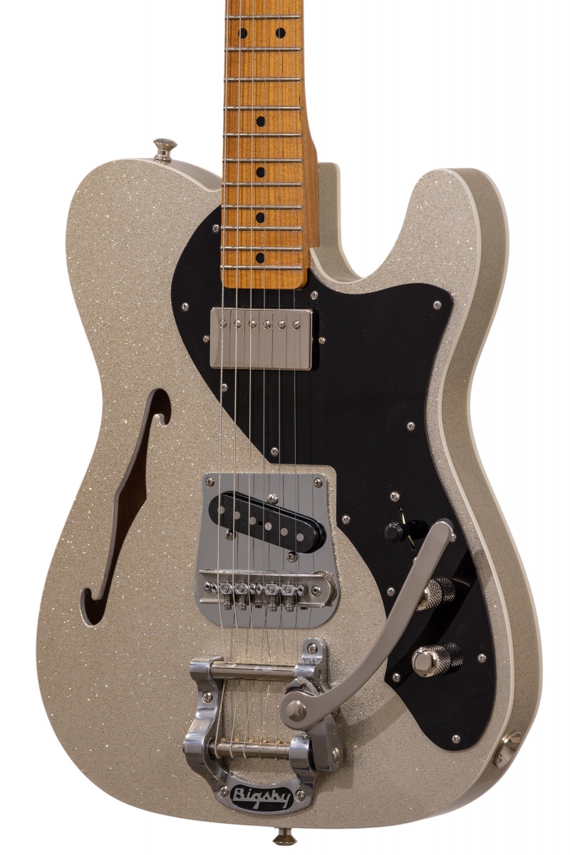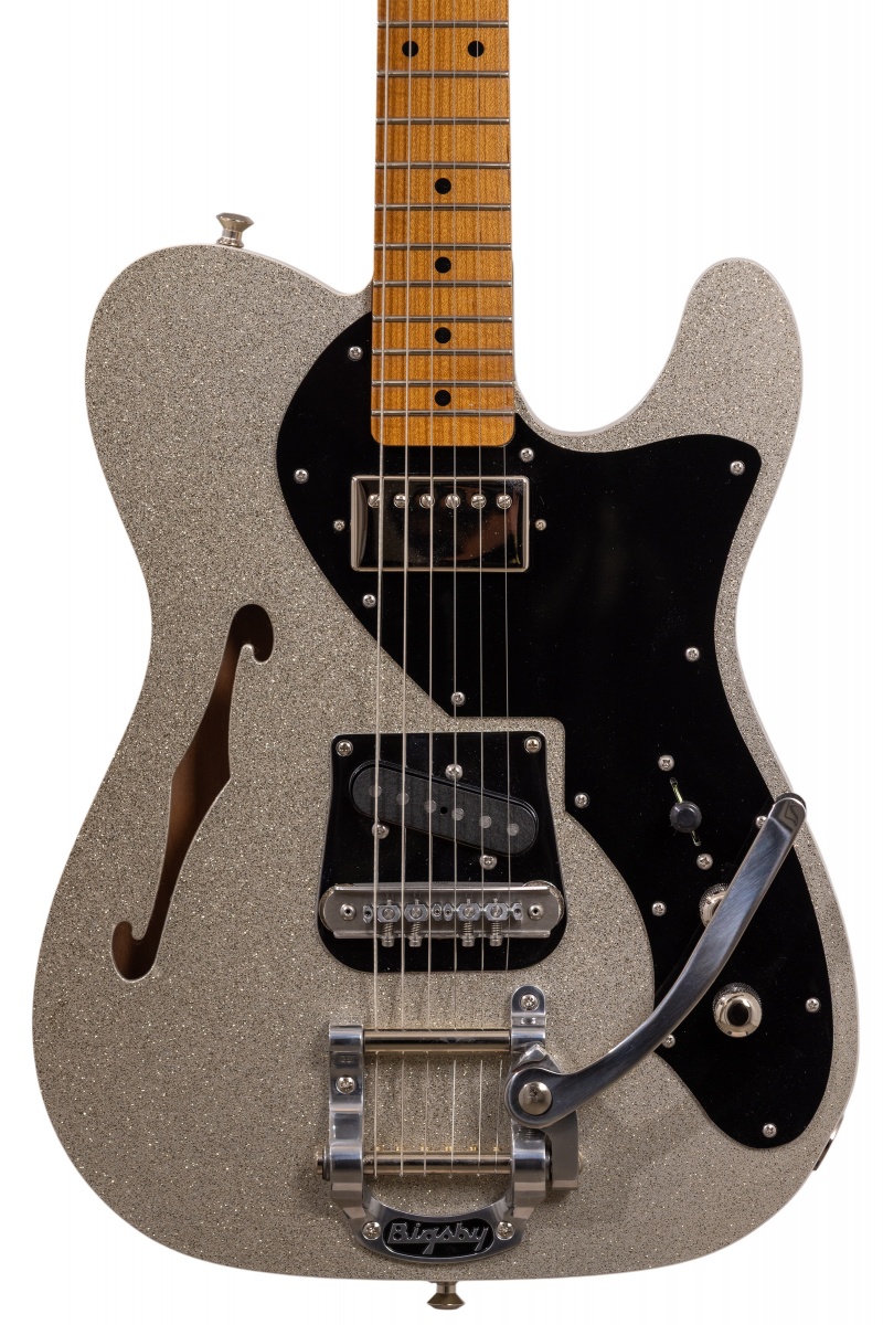 Rich Harries' guitar: chambered and bound alder body, quartersawn maple / Indian rosewood neck, Lollar Special and El Rayo pickups, Mastery bridge, Bigsby B5 vibrato, champagne metal flake over Inca Silver.