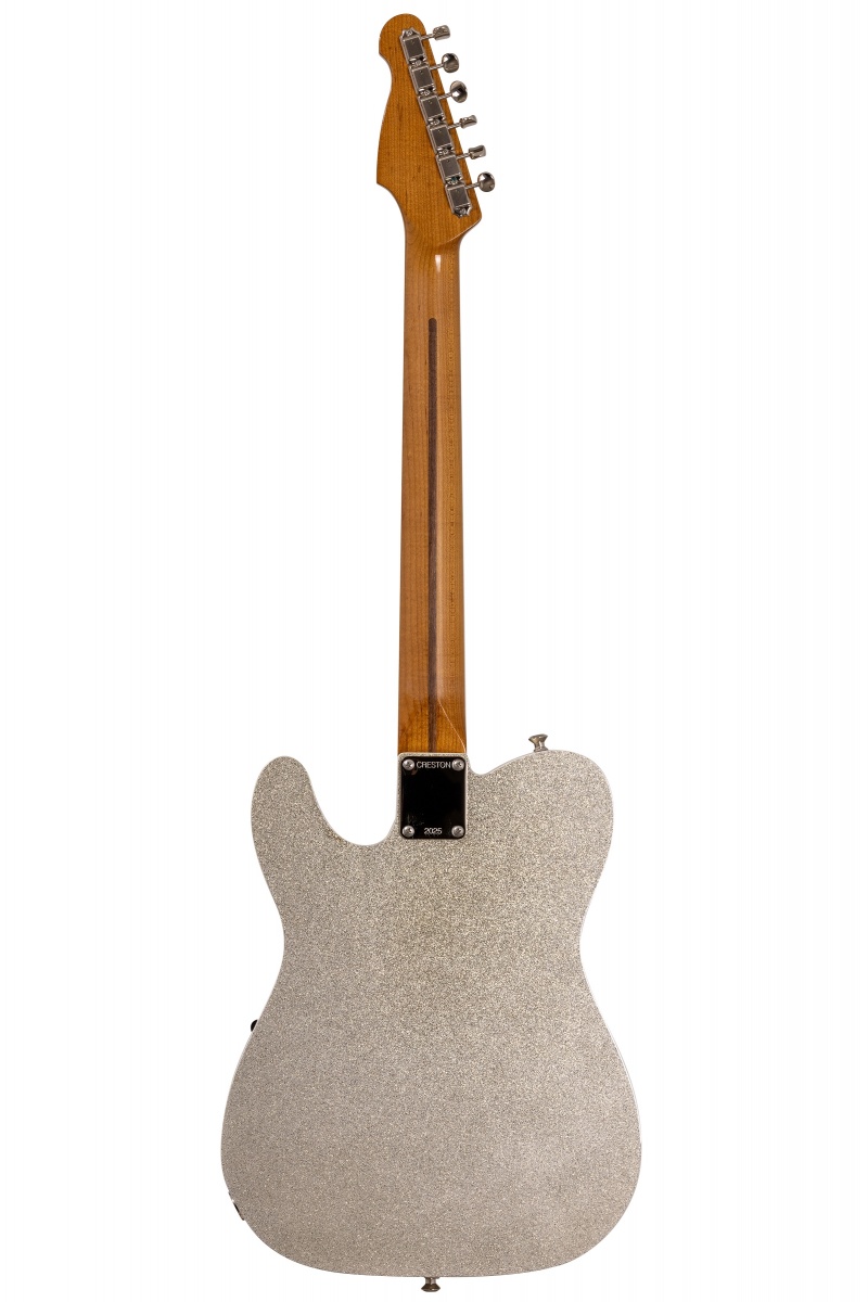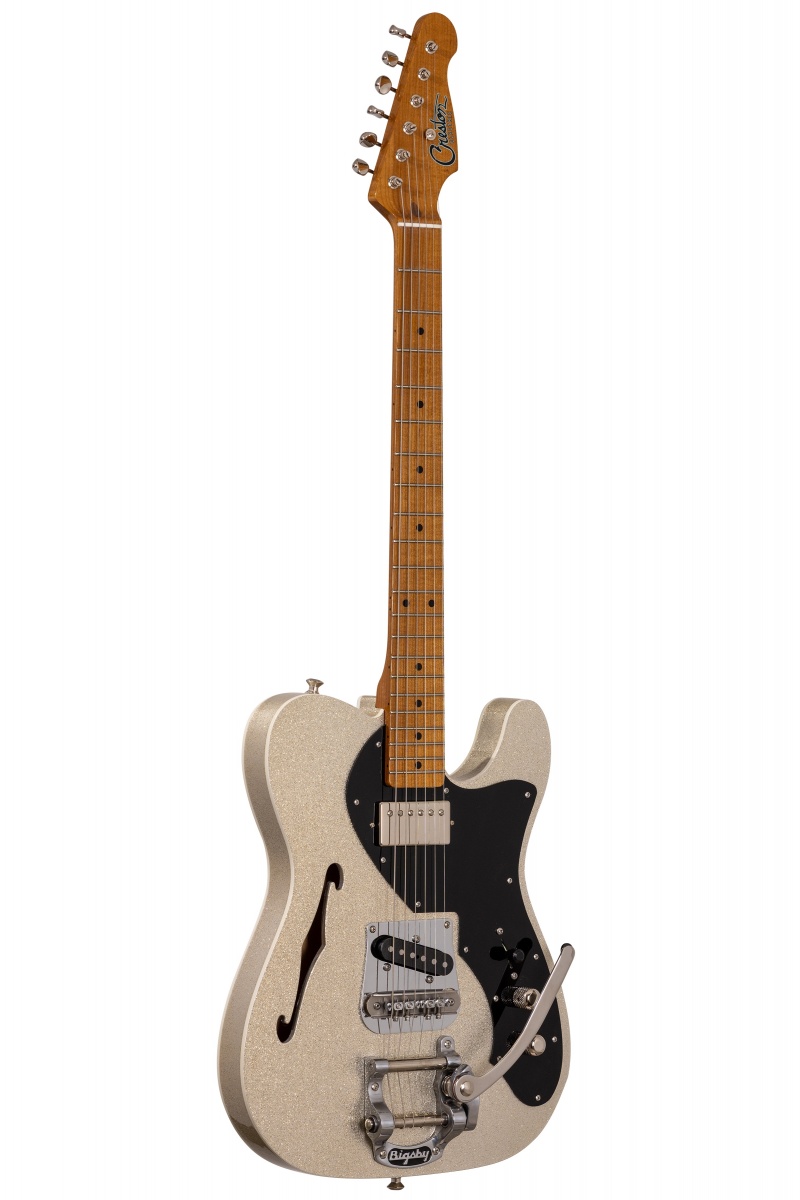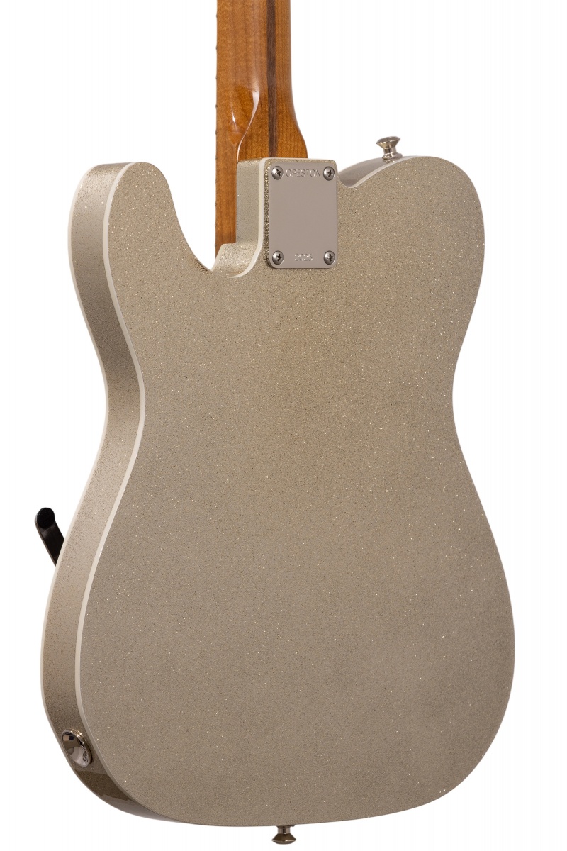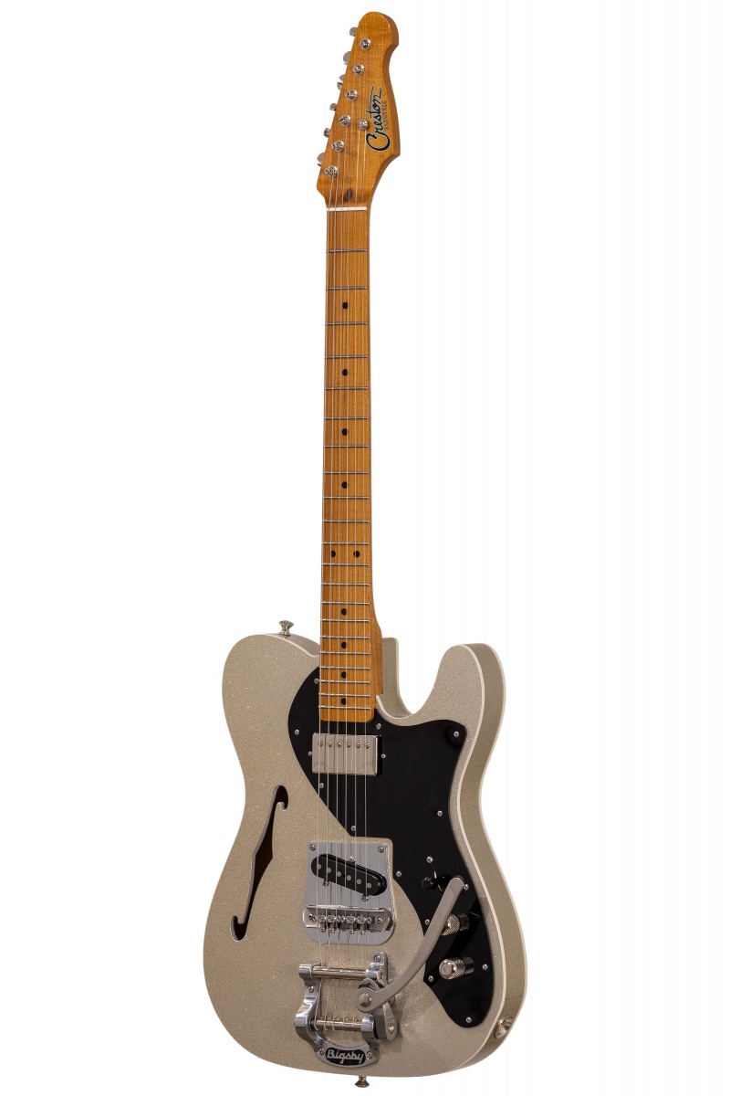 Rich Harries' guitar: chambered and bound alder body, quartersawn maple / Indian rosewood neck, Lollar Special and El Rayo pickups, Mastery bridge, Bigsby B5 vibrato, champagne metal flake over Inca Silver.