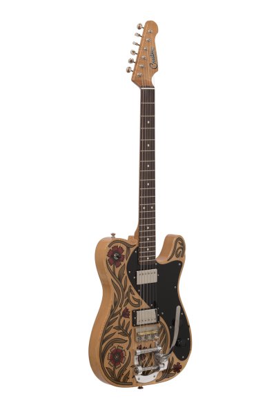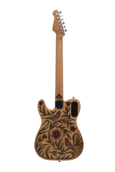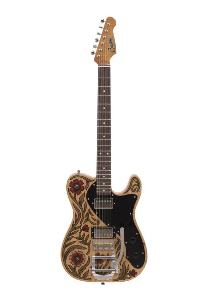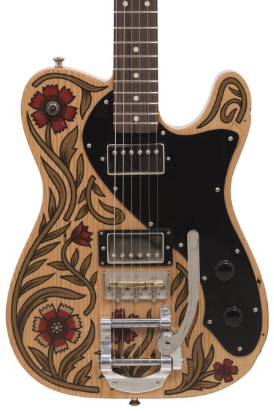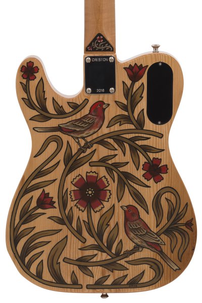 Lee Petruzzelli's guitar: 1-pc salvaged spruce body, torrefied maple / rosewood neck, lacquered bakelite pickguard, Lollar Low-Wind Imperial pickups, horseshoe vibrato, Sarah Ryan paint. Happy birthday, Lee!
