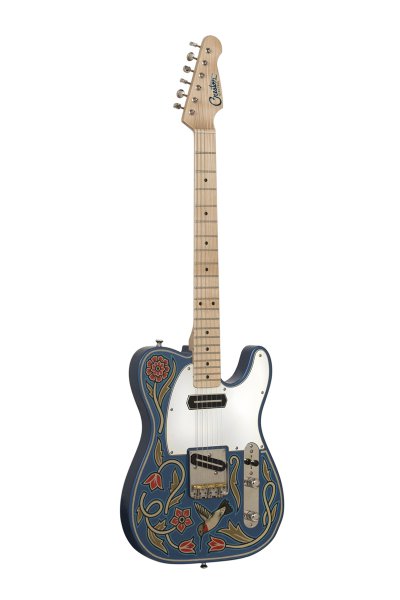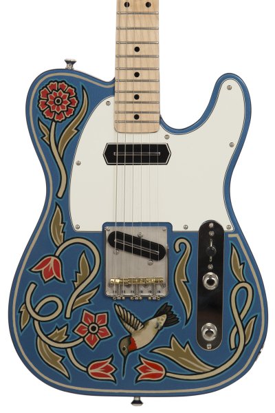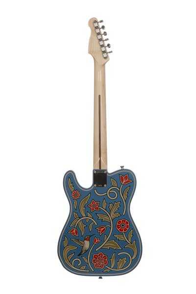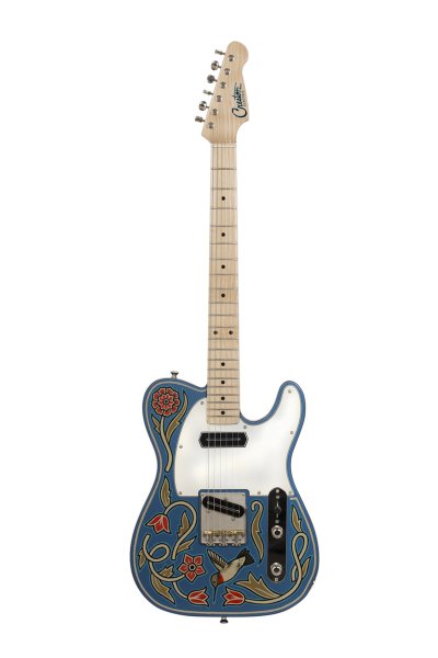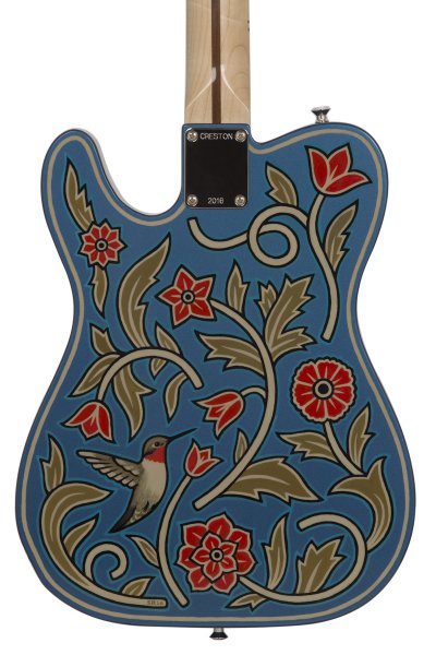 Tony Espy's guitar: 1-pc sugar pine body, 1-pc maple neck, Lollar Charlie Christian neck and BS bridge pickups, Sarah Ryan paint over metallic blue lacquer.