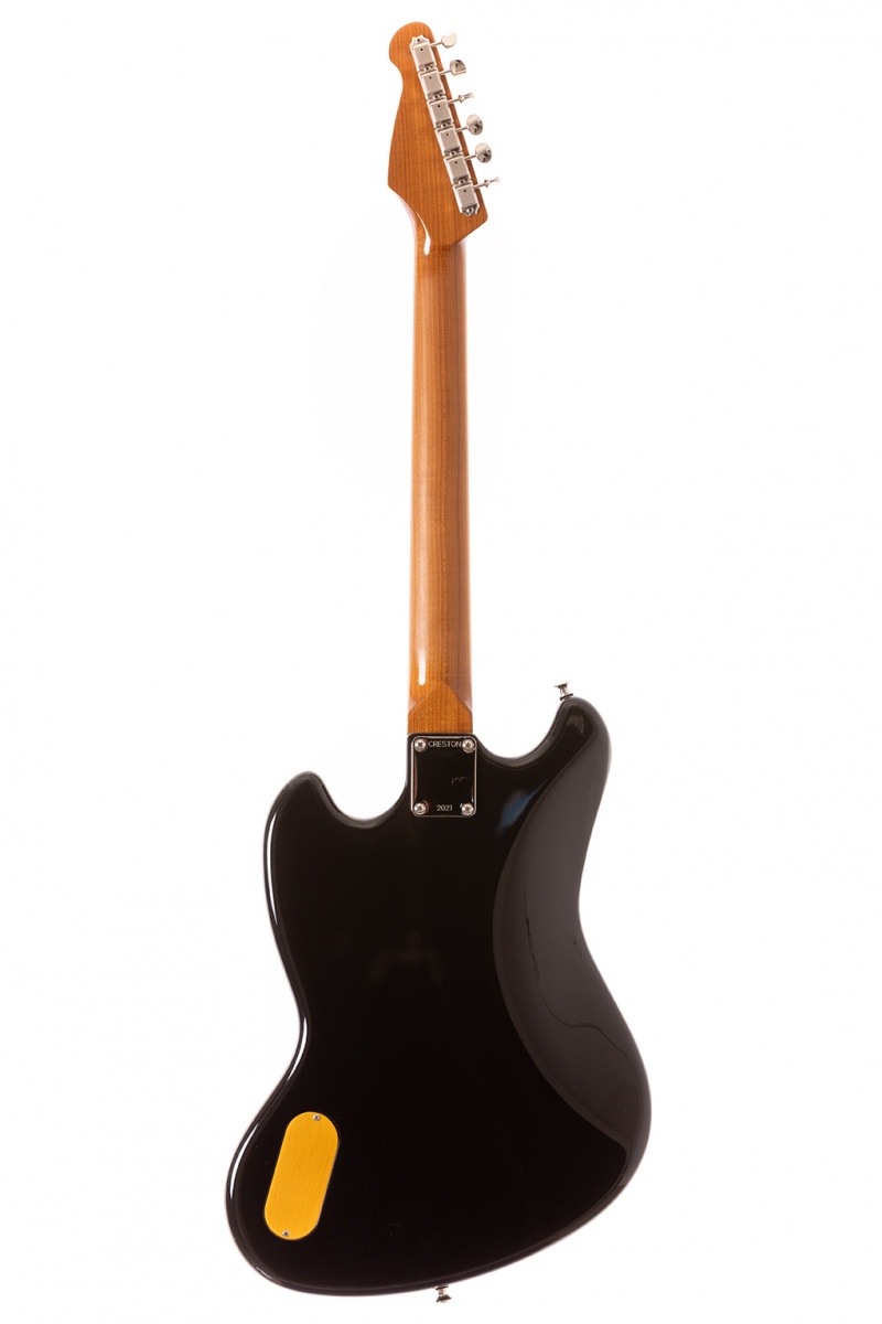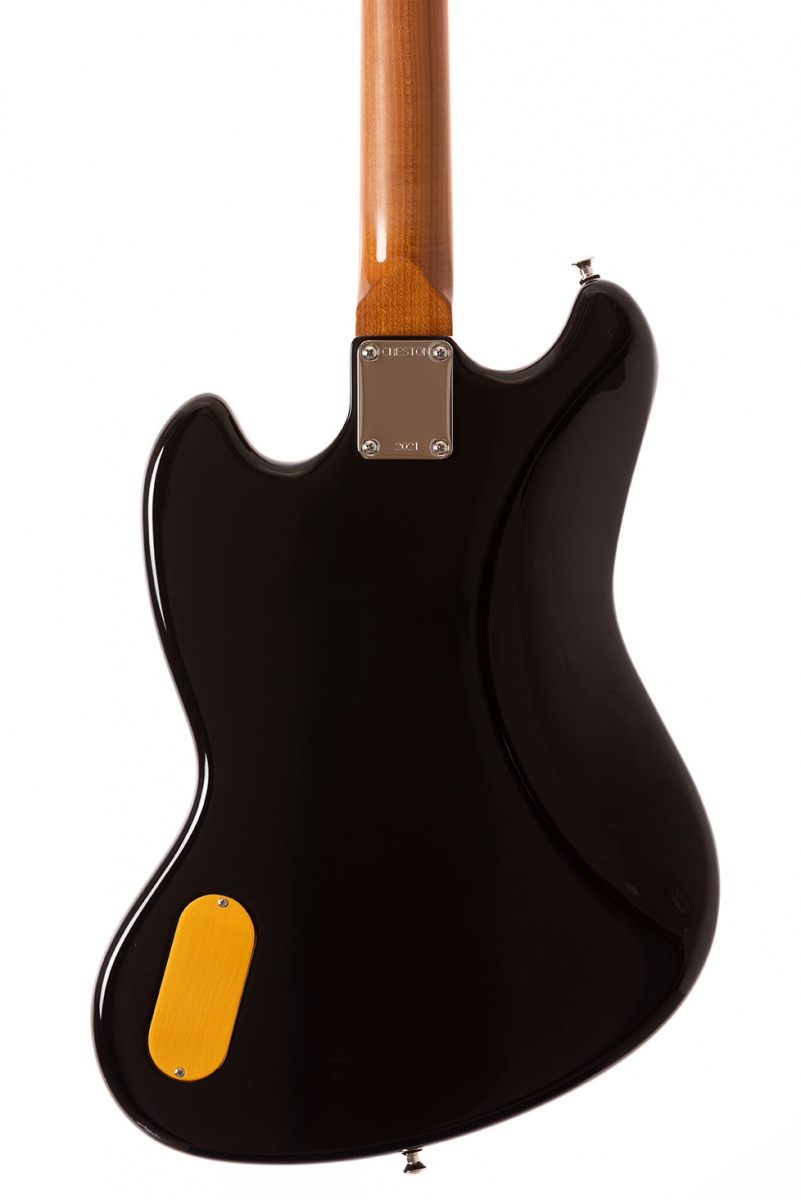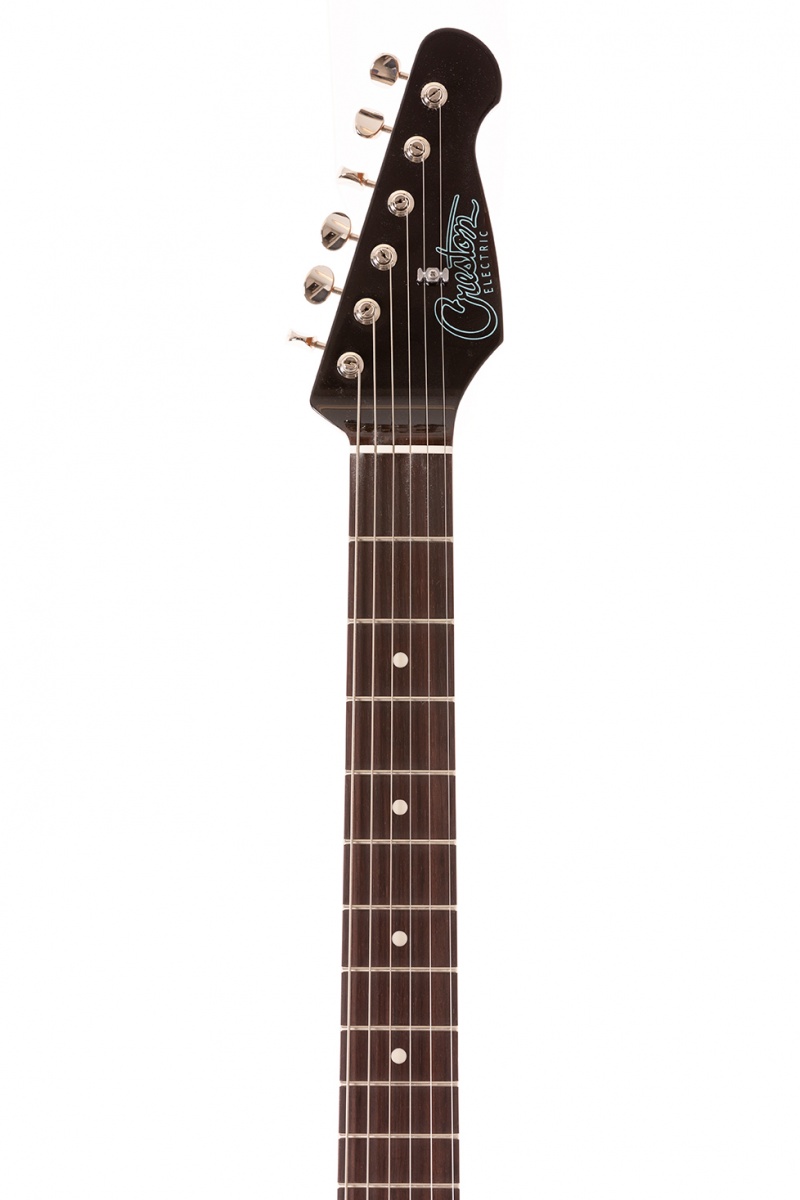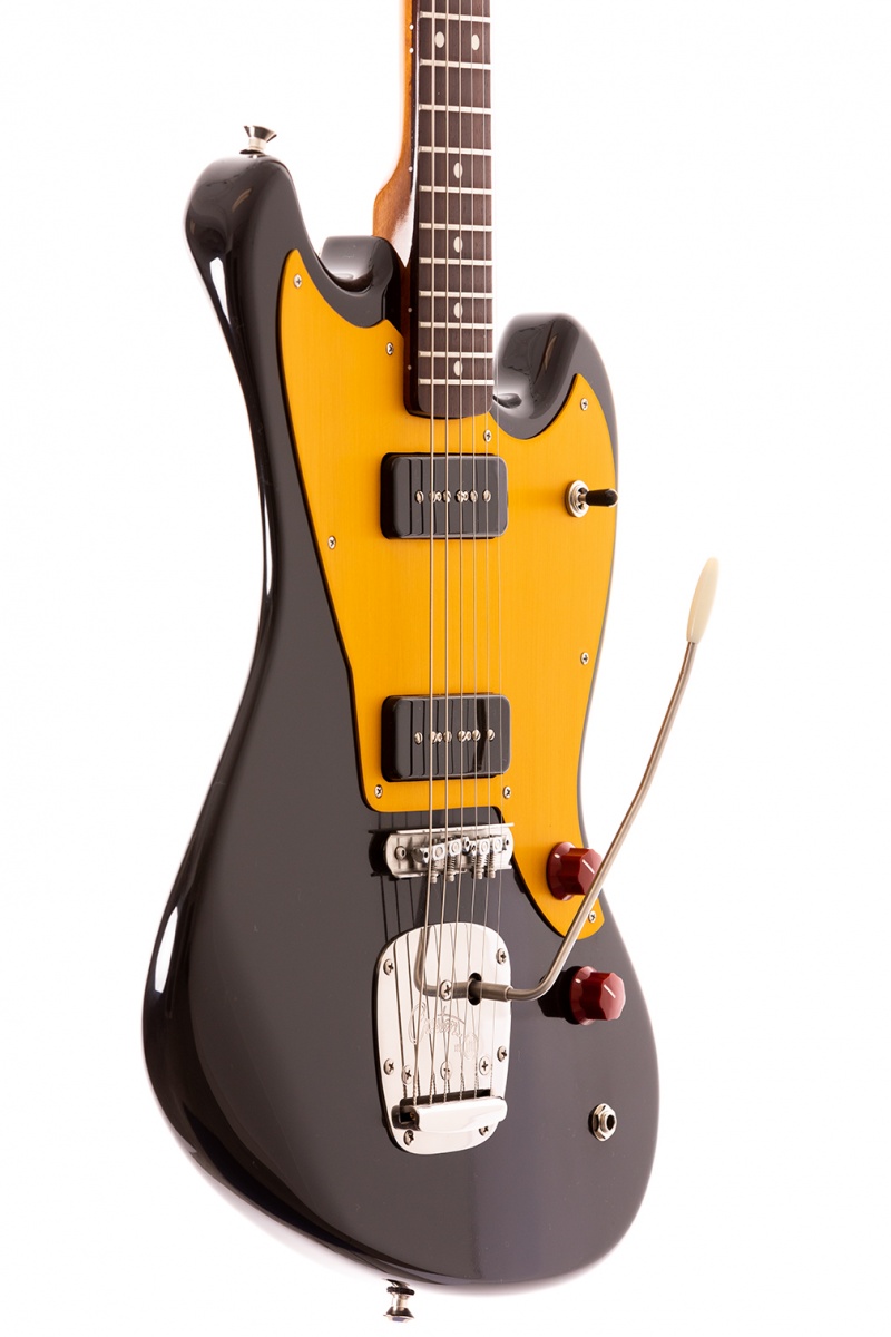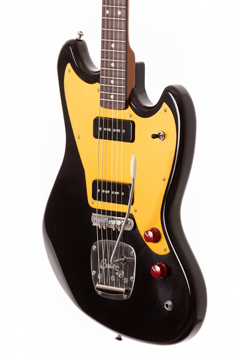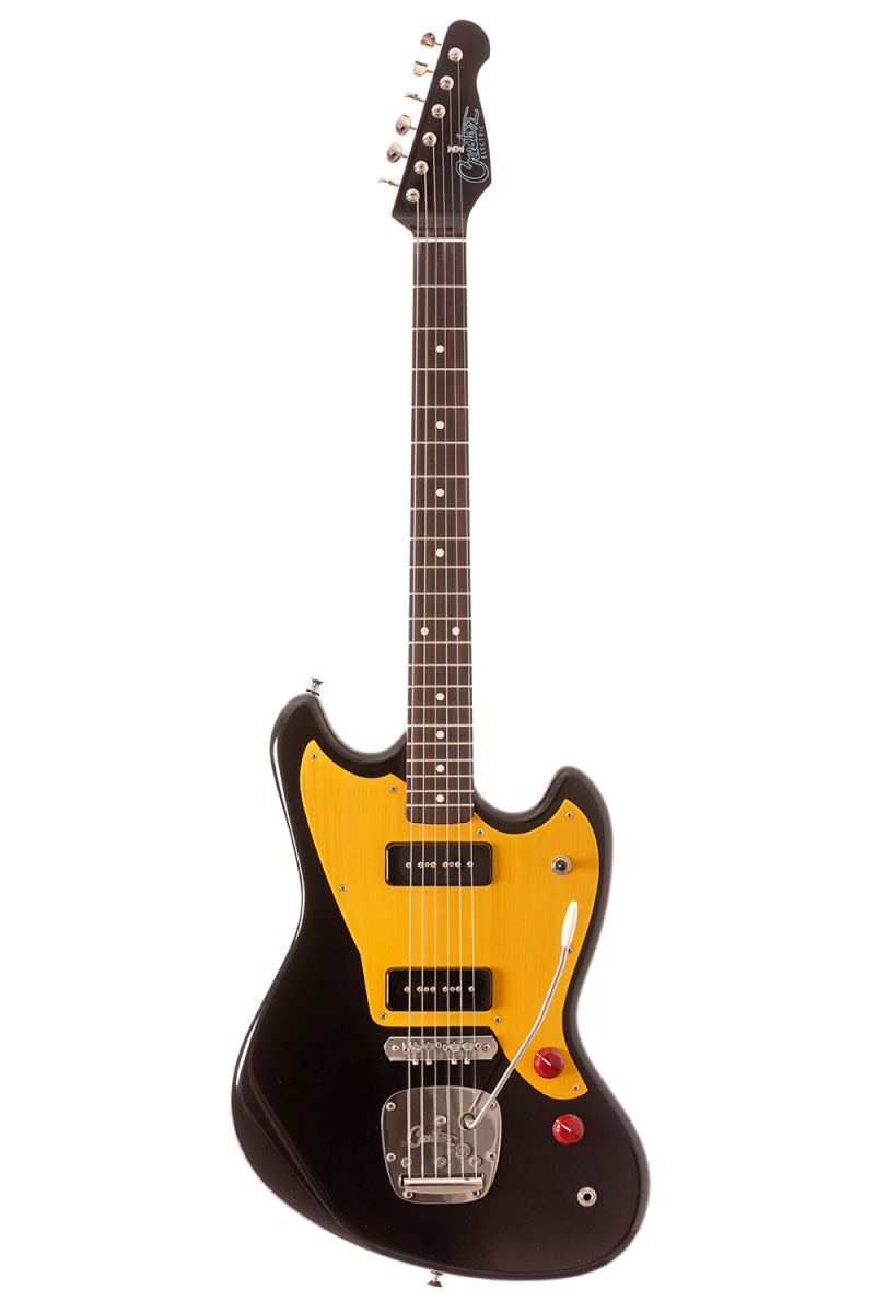 Anders Hoglind's guitar: light ash body, torrefied maple / Indian rosewood neck, Lollar 1950's and Standard-wind soapbar pickups, Mastery hardware, anodized aluminum pickguard and cavity cover.