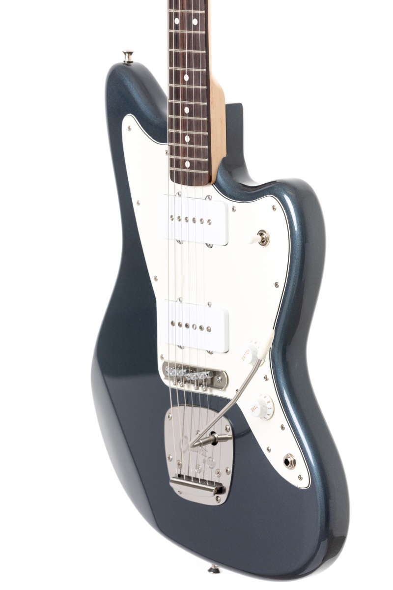 other charcoal frost metallic guitar I made for Ben Mackintyre last year: torrefied alder body, quartersawn maple / Indian rosewood neck, Curtis Novak JM-90 neck and JM-180 bridge pickups, Mastery hardware, push-pull coil tap for the JM-180 on the tone control.