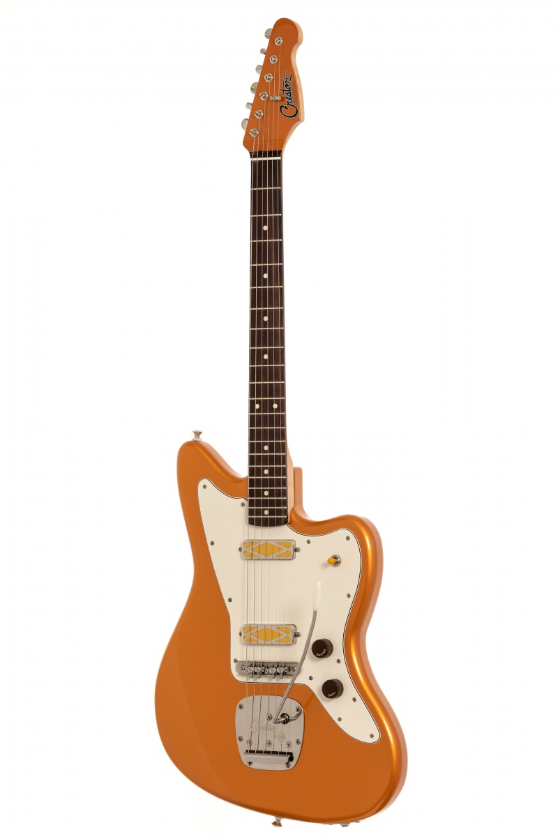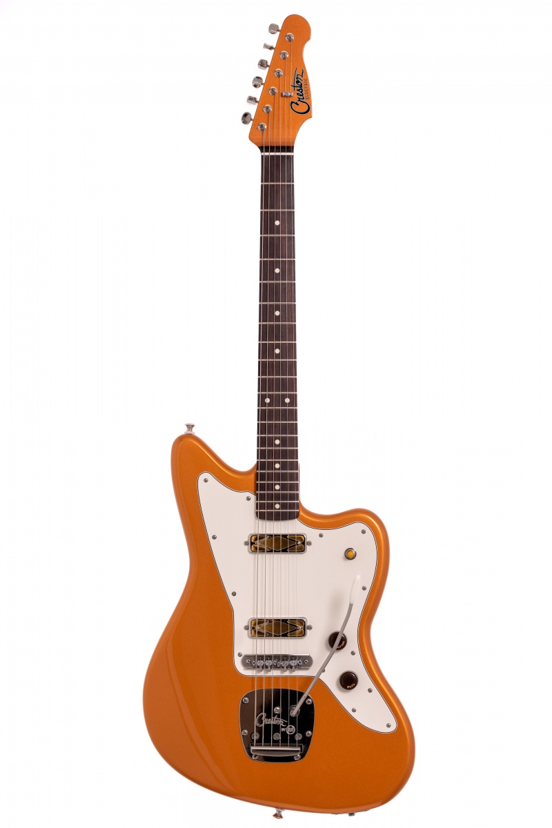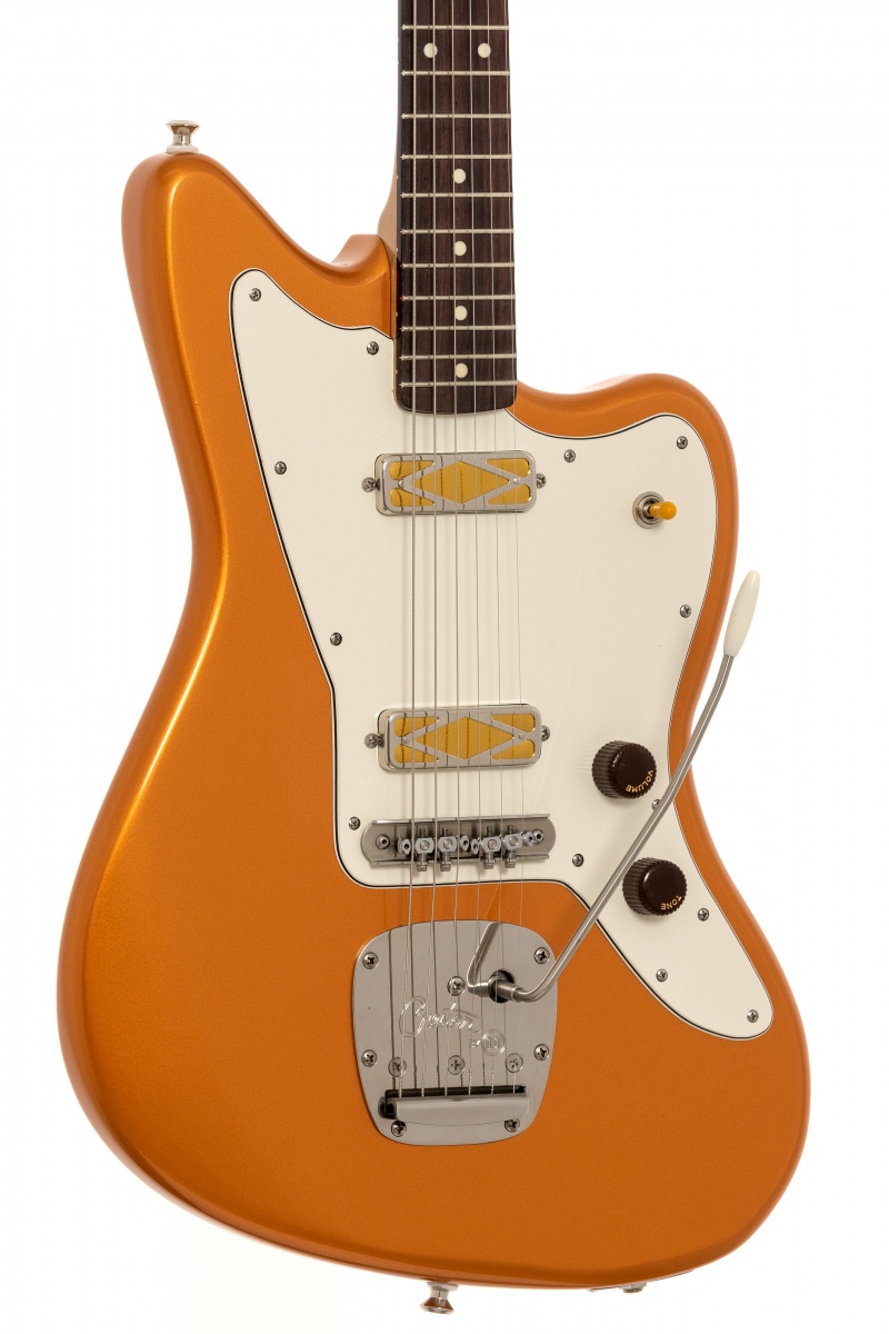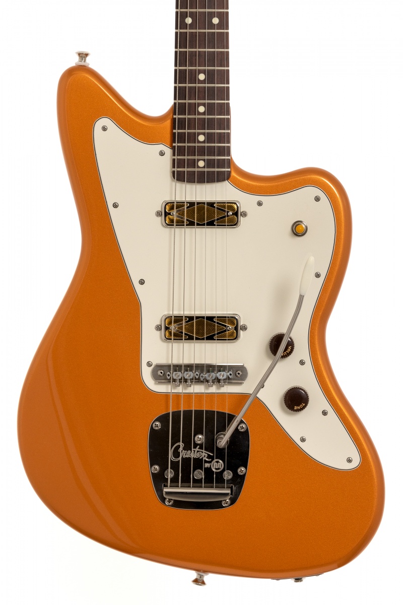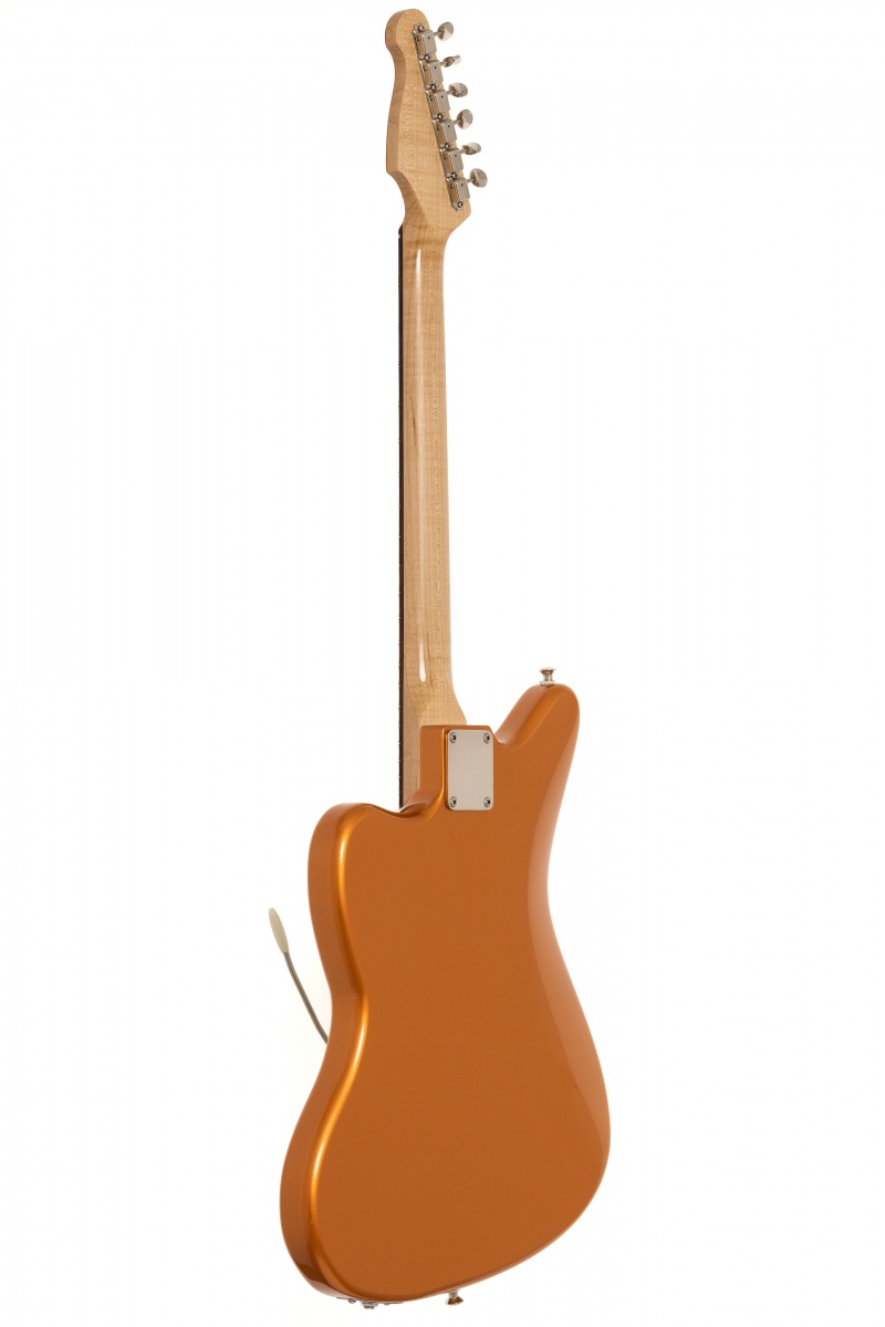 John Redd's guitar: Torrefied alder body, quartersawn maple / Indian rosewood neck, Curtis Novak GT-V pickups, Mastery hardware, metallic orange lacquer.