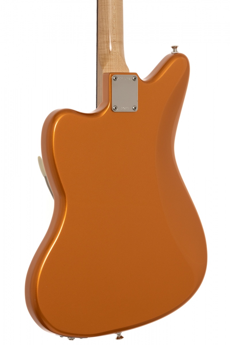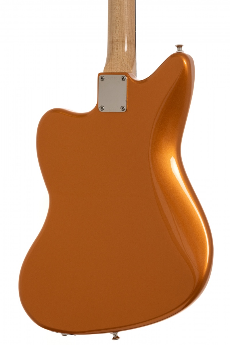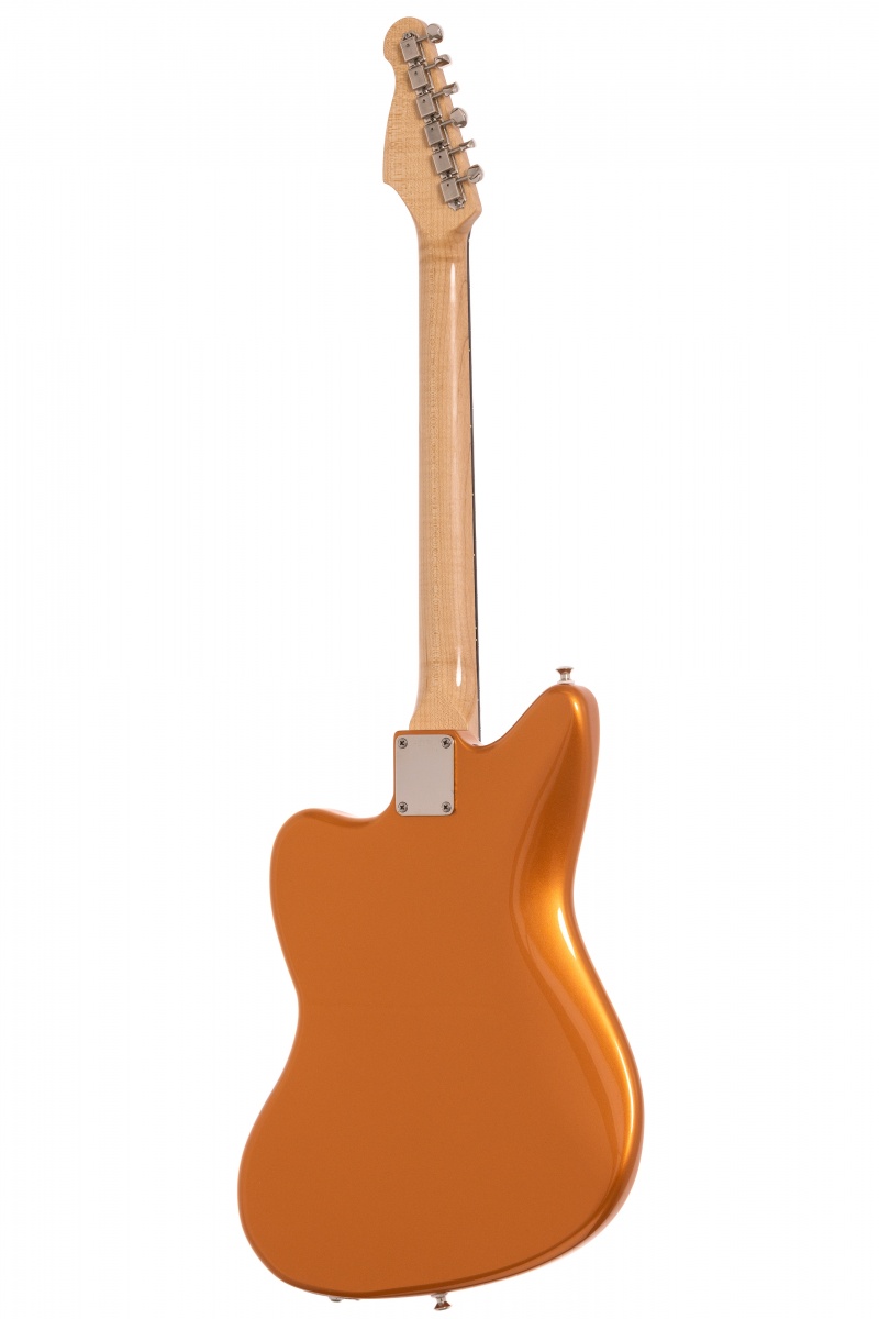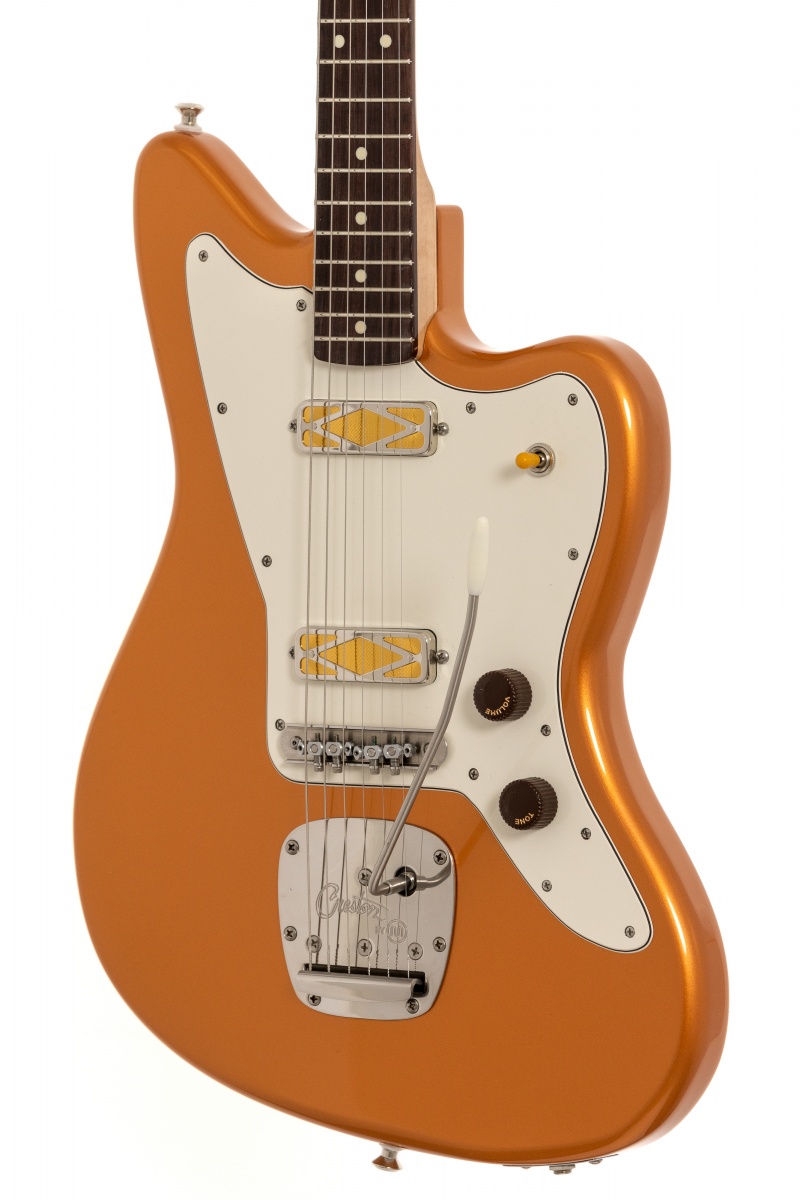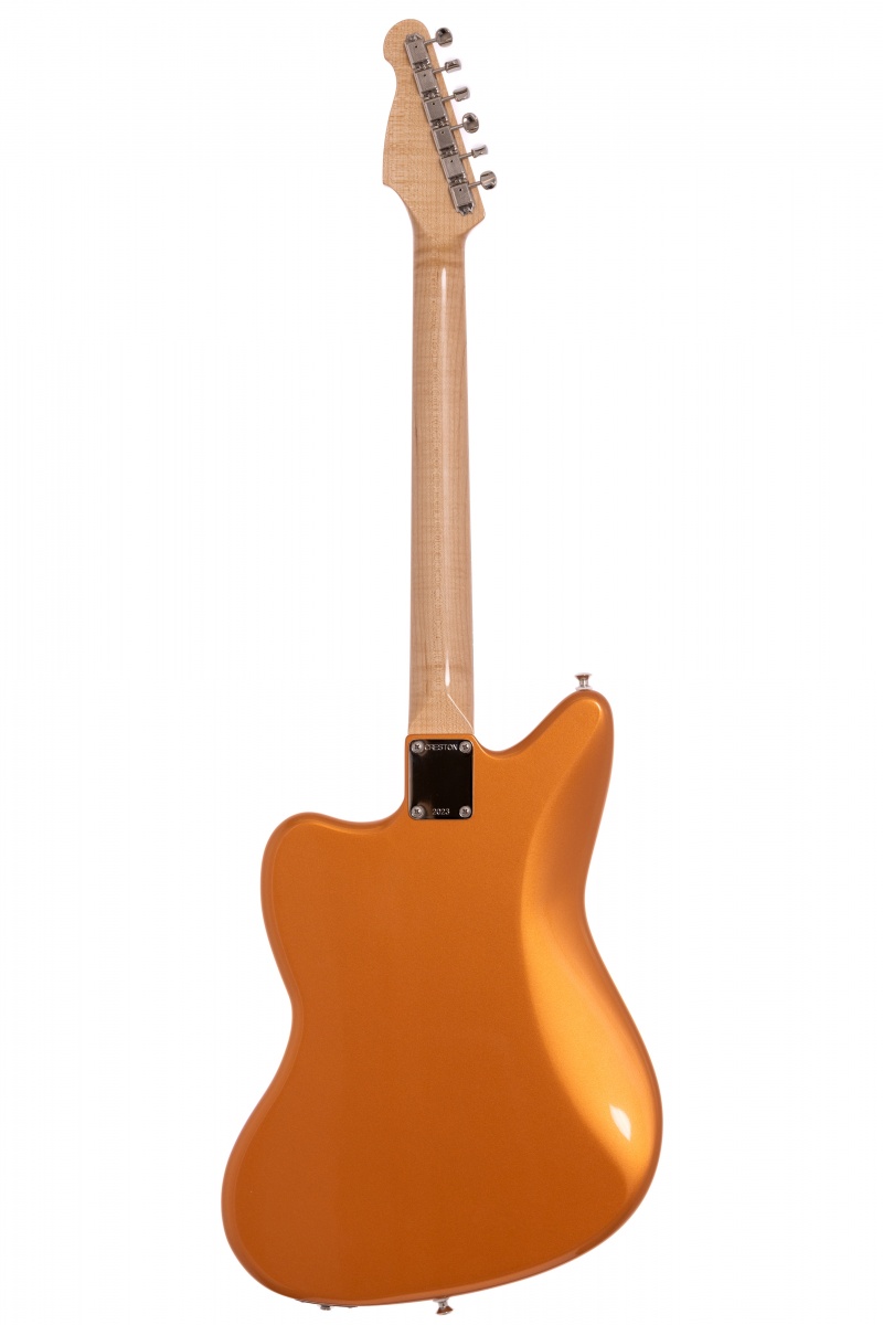 John Redd's guitar: Torrefied alder body, quartersawn maple / Indian rosewood neck, Curtis Novak GT-V pickups, Mastery hardware, metallic orange lacquer.