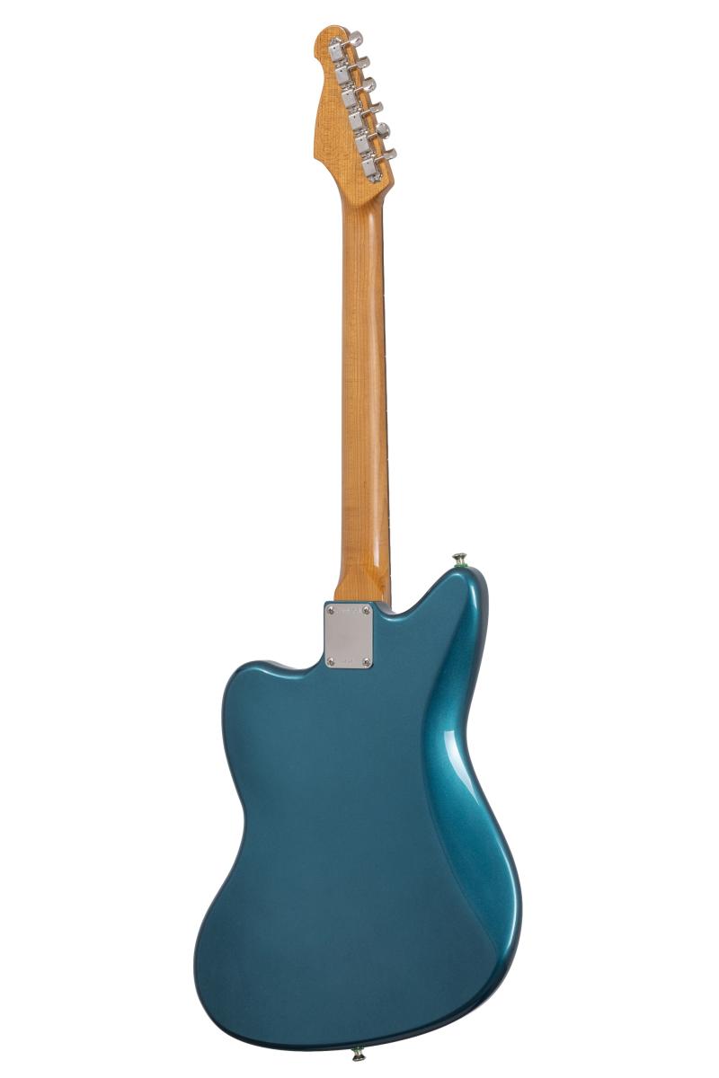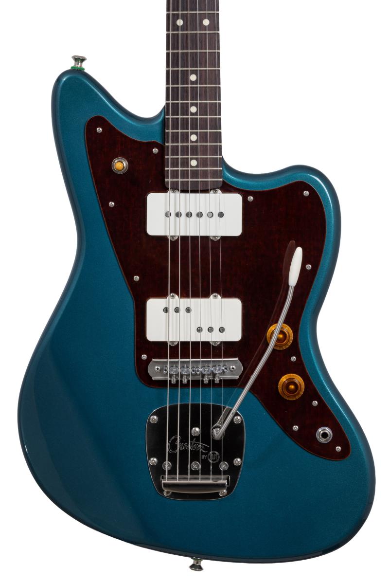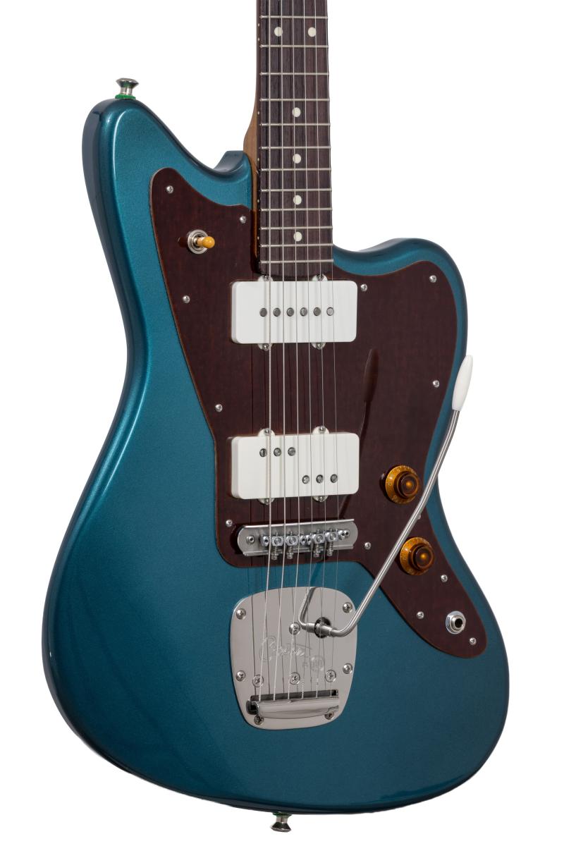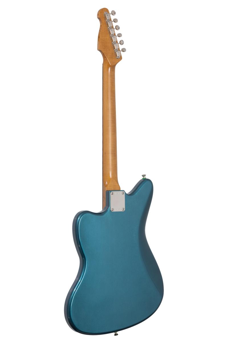 Kyle's new guitar: torrefied alder body, torrefied quartersawn maple / Indian rosewood neck, linen micarta pickguard, Lollar Regal and JM pickups, Mastery bridge and vibrato, push-push series switching, metallic green lacquer. Yes, green.