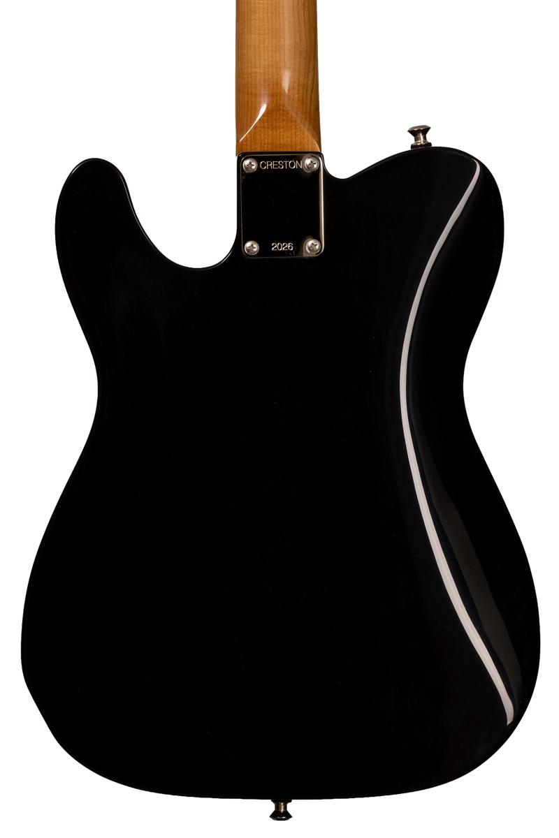 Mike Bove's guitar: contoured torrefied butternut body, torrefied maple / Indian rosewod neck, Lollar Special and Gold Foil pickups.