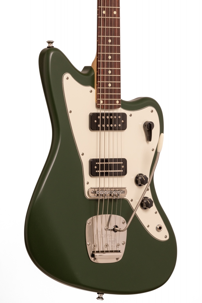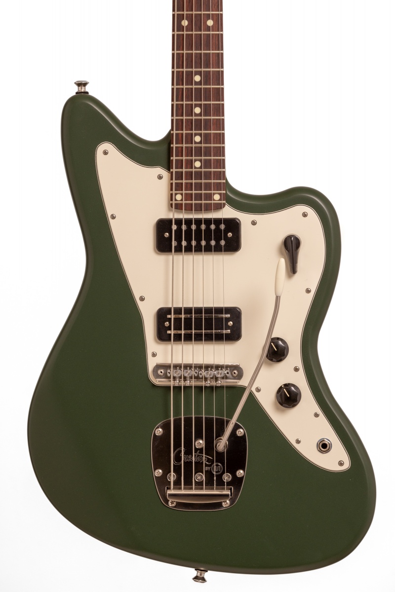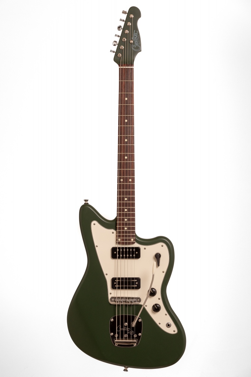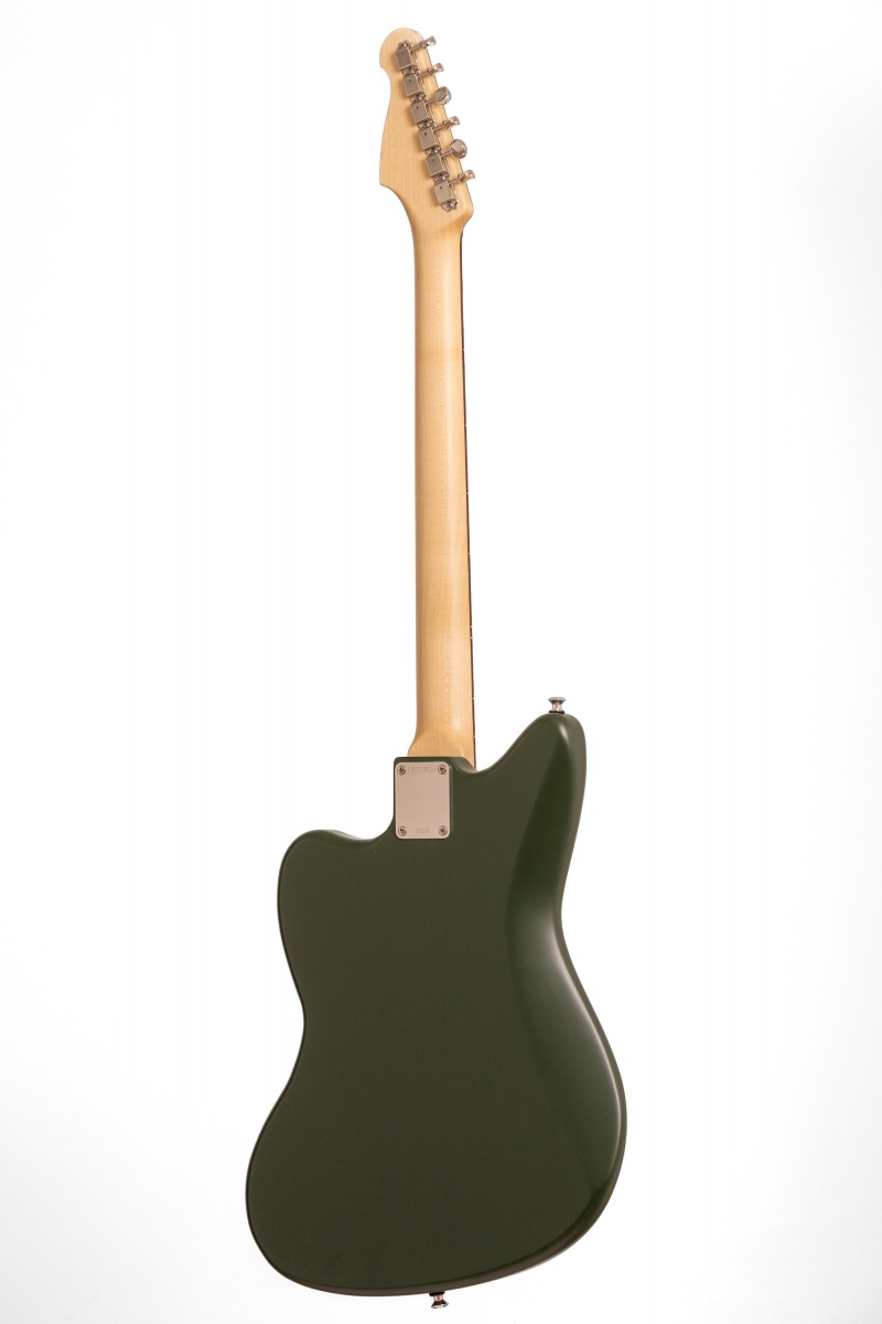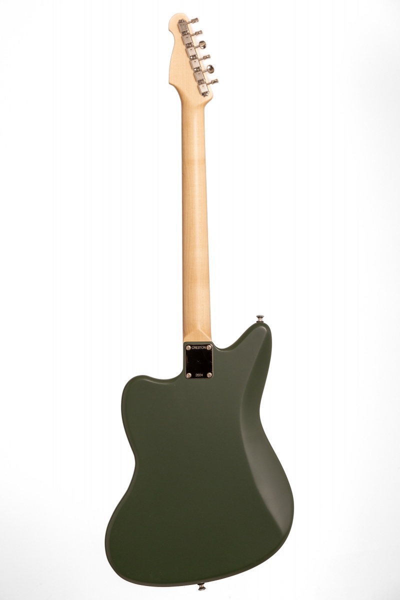 Tom Sutton's baritone: 24-fret 26'3/4" scale, torrefied white pine body, quartersawn maple / Indian rosewood neck, Mastery bridge and vibrato, TV Jones MagnaTron and SuperTron pickups, pickup bend control, matte lacquer.