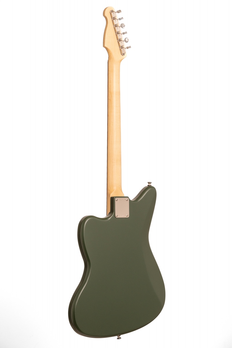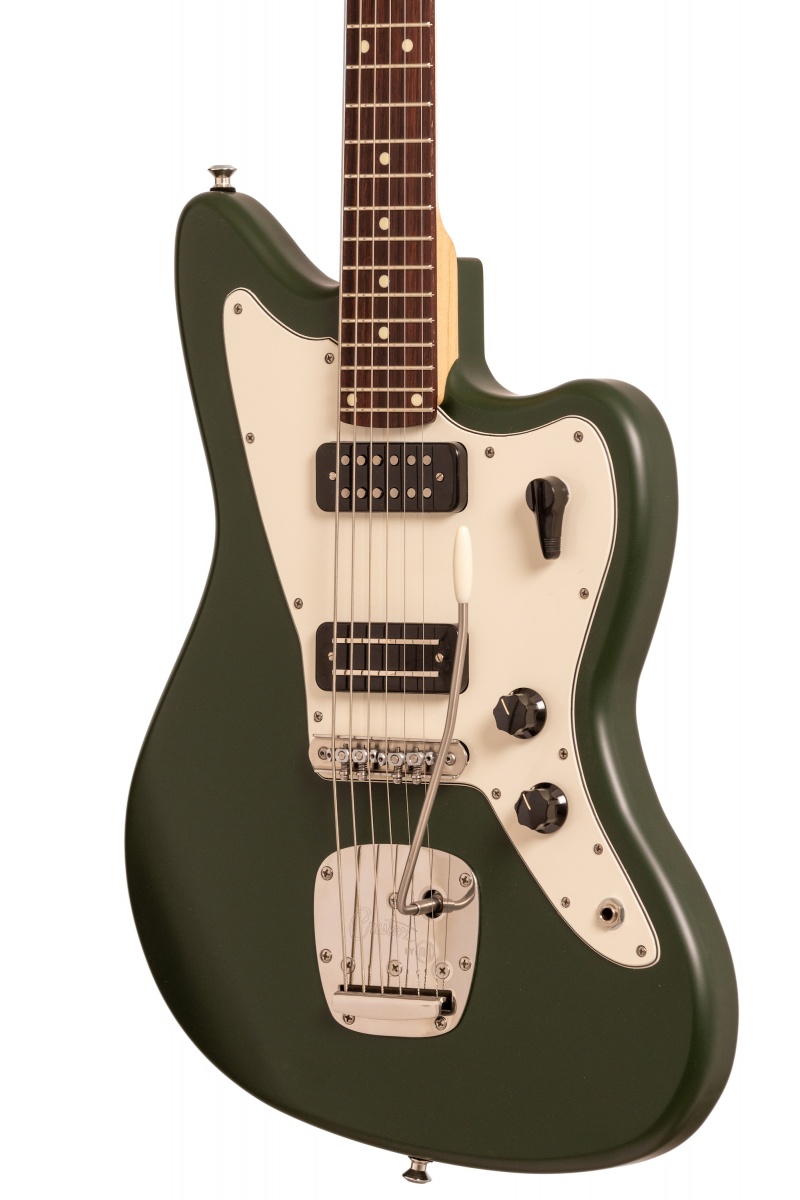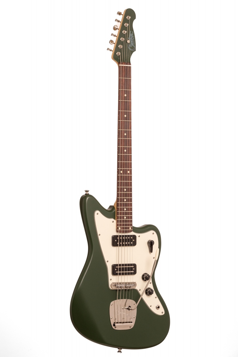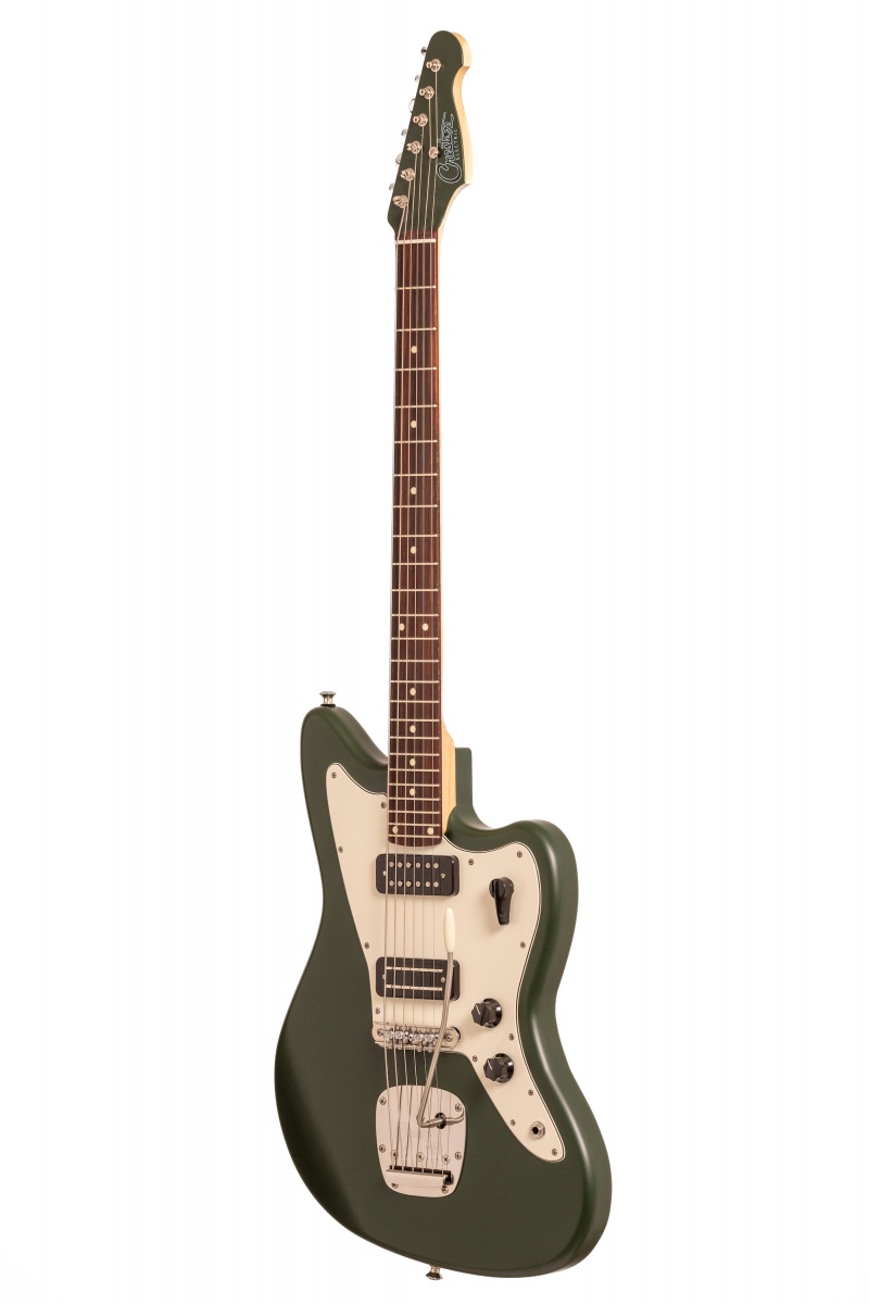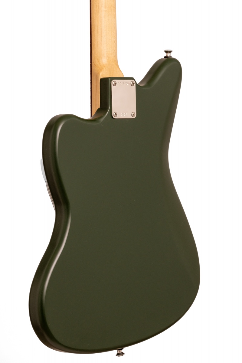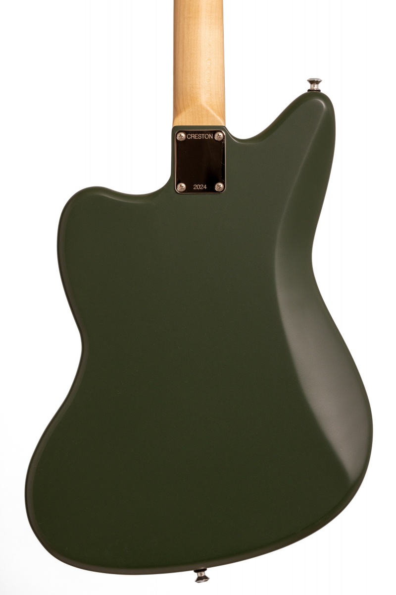 Tom Sutton's baritone: 24-fret 26'3/4" scale, torrefied white pine body, quartersawn maple / Indian rosewood neck, Mastery bridge and vibrato, TV Jones MagnaTron and SuperTron pickups, pickup bend control, matte lacquer.